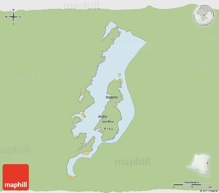 Maphill is a collection of map images. This view of Lake Kivu at an angle of 60° is one of these images. Click on the Detailed button under the map for a more comprehensive map.