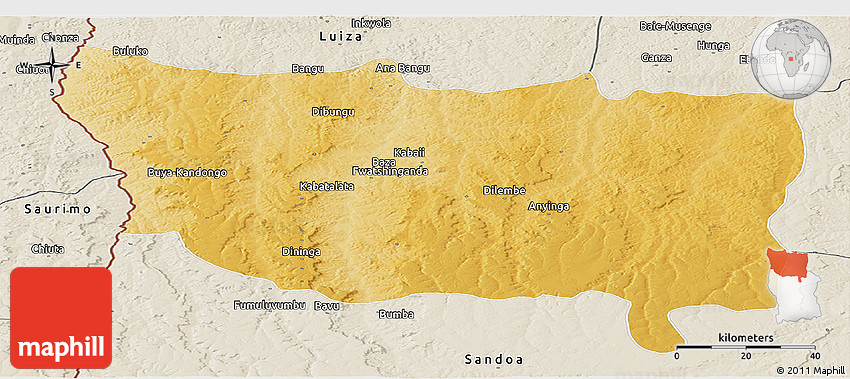 Each map type offers different information and each map style is designed for a different purpose. Read about the styles and map projection used in the above map (Physical Panoramic Map of Kapanga, shaded relief outside).