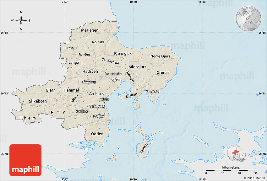 Maphill is a collection of map images. This shaded relief map of Arhus is one of them. Click on the Detailed button under the image to switch to a more detailed map.