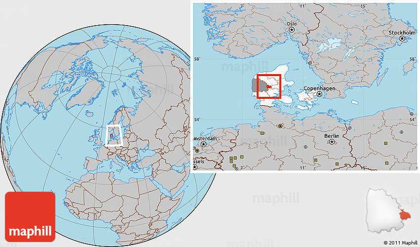 Maphill is a collection of map images. This image combines a gray map with the globe centered on Ikast. Use the buttons under the image to switch to different map types.