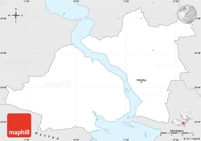 The simple silver style outline map represents one of several map types and styles available. Look at Nykobing Falster, Storstrom, Denmark from different perspectives.