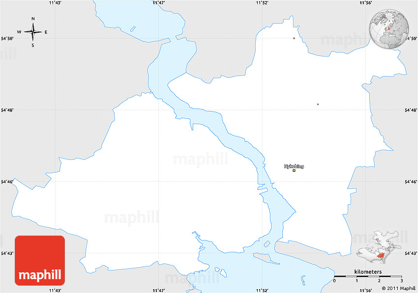 The simple silver style outline map represents one of several map types and styles available. Look at Nykobing Falster, Storstrom, Denmark from different perspectives.