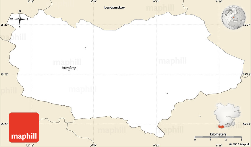 The simple classic style outline map represents one of several map types and styles available. Look at Vamdrup, Vejle, Denmark from different perspectives.