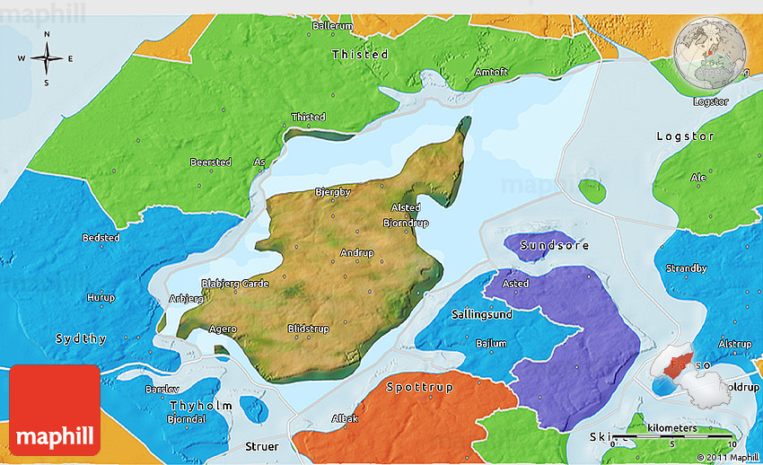 Each map style has its advantages. No map type is the best. The best is that Maphill lets you look at Morso from many different perspectives.