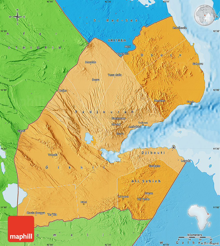 Maphill is a collection of map images. This political shades map of Djibouti is one of them. Click on the Detailed button under the image to switch to a more detailed map.