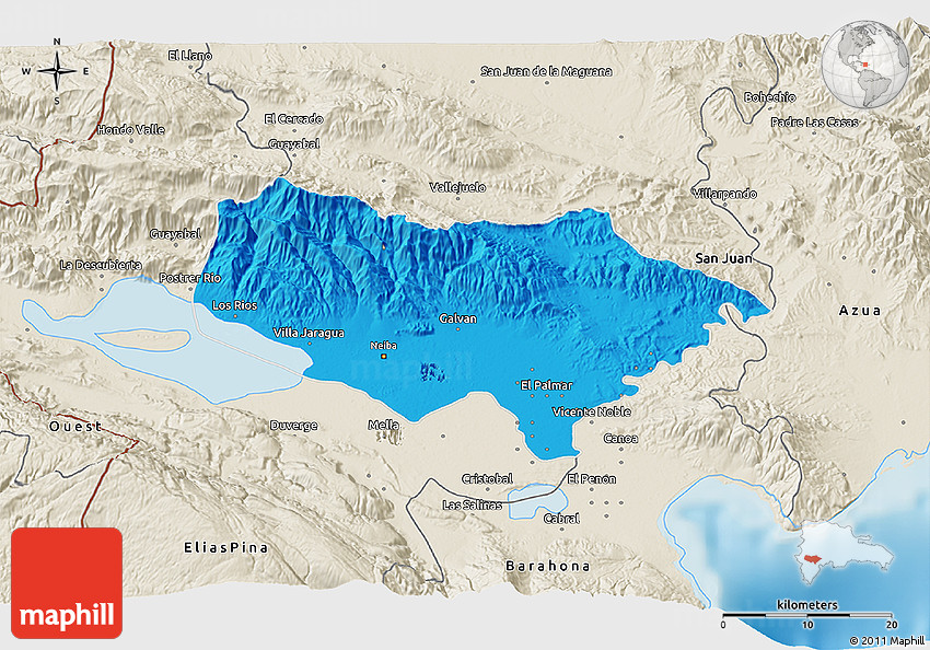 Each map type offers different information and each map style is designed for a different purpose. Read about the styles and map projection used in the above map (Political 3D Map of Baoruco, shaded relief outside).