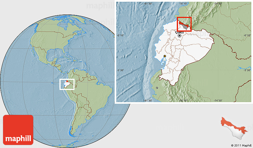 Maphill is a collection of map images. This image combines a savanna style map with the globe centered on Tulcan. Use the buttons under the image to switch to different map types.