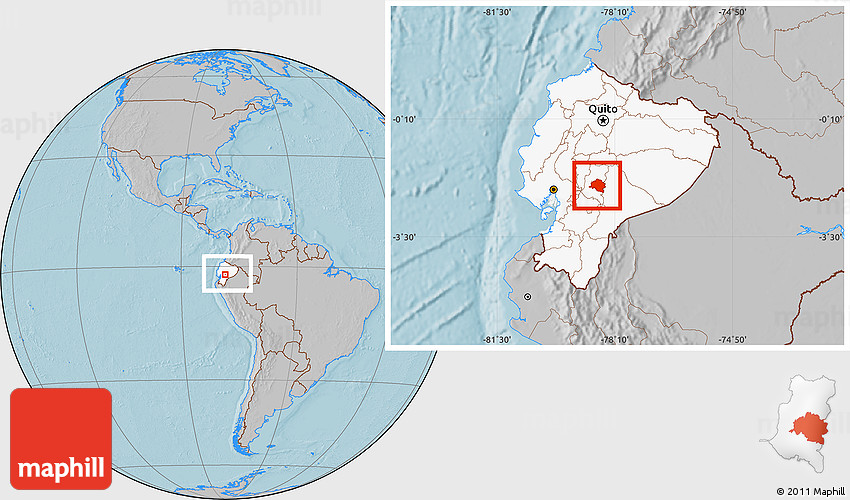 Maphill is a collection of map images. This image combines a gray map with the globe centered on Guamote. Use the buttons under the image to switch to different map types.