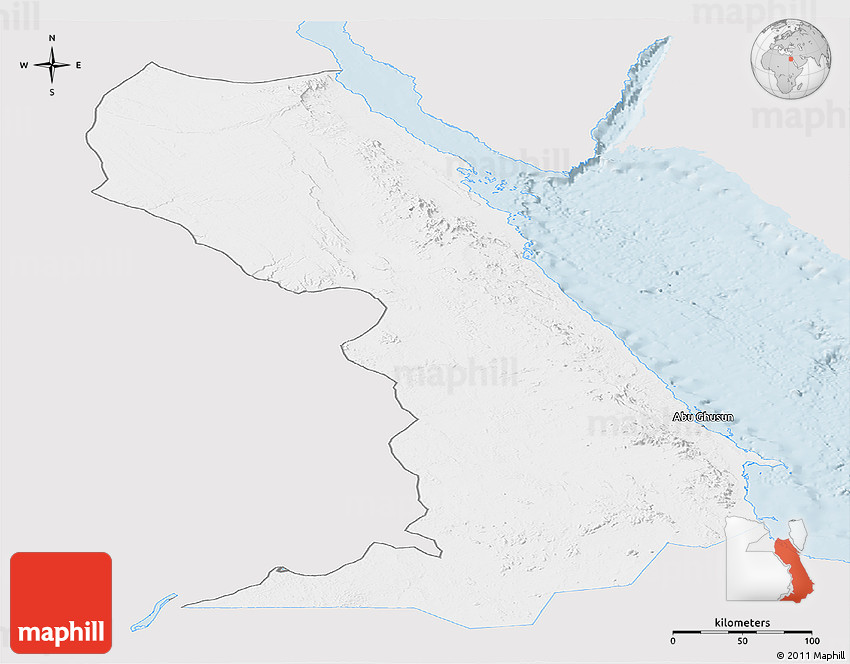 The panoramic silver style map represents one of several map types and styles available. Look at Al Bahr/Al Ahmar (RedSea), Frontier Governates, Egypt from different perspectives.