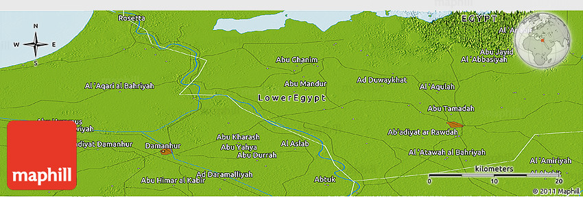 The panoramic physical map represents one of many map types and styles available. Look at Al `Aqarī al Baḩrīyah, Al Buhayrah (Behera), Lower Egypt, Egypt from different perspectives.