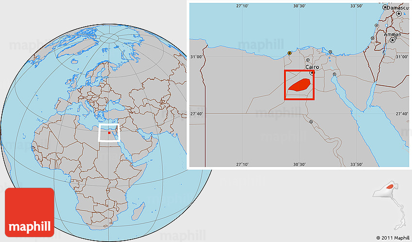 Maphill is a collection of map images. This image combines a gray map with the globe centered on Al Fayyum (Fayoum). Use the buttons under the image to switch to different map types.