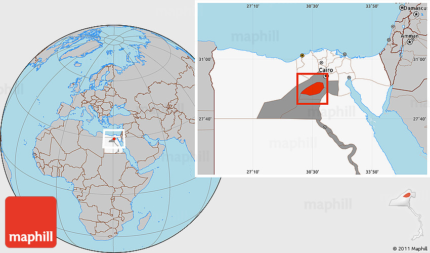 Maphill is a collection of map images. This image combines a gray map with the globe centered on Al Fayyum (Fayoum). Use the buttons under the image to switch to different map types.