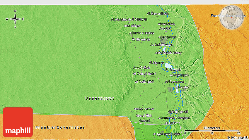 The 3D political map represents one of many map types and styles available. Look at Al Badramān, Al Minya (Menia), Upper Egypt, Egypt from different perspectives.