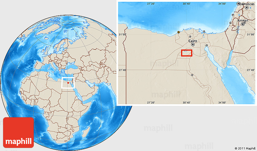 Maphill is a collection of map images. This image combines a shaded relief map with the globe centered on `Izbat Ḩasan Sirrī. Use the buttons under the image to switch to different map types.