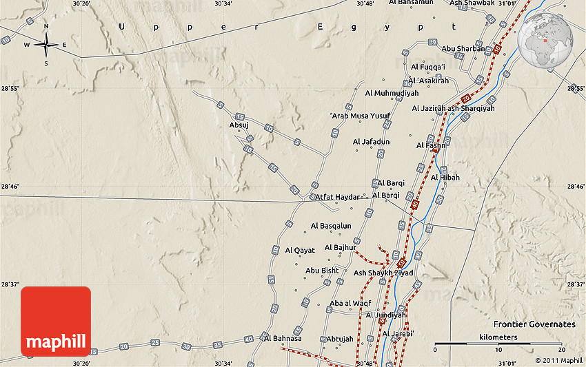 Maphill is a collection of map images. This shaded relief map of Nazlat Ḩannā Ḩannā is one of them. Click on the Detailed button under the image to switch to a more detailed map.