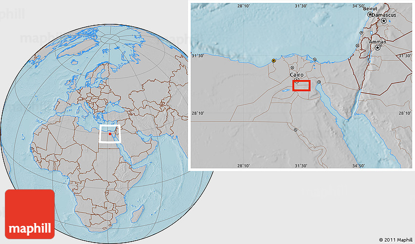 Maphill is a collection of map images. This image combines a gray map with the globe centered on Ţurá al Ḩajjārah. Use the buttons under the image to switch to different map types.