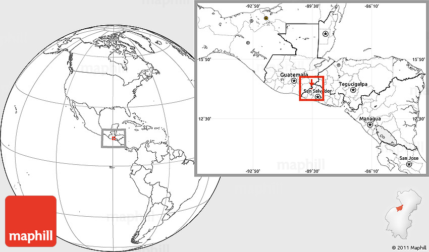 Maphill is a collection of map images. This image combines a blank map with the globe centered on San Antonio Pajonal. Use the buttons under the image to switch to different map types.