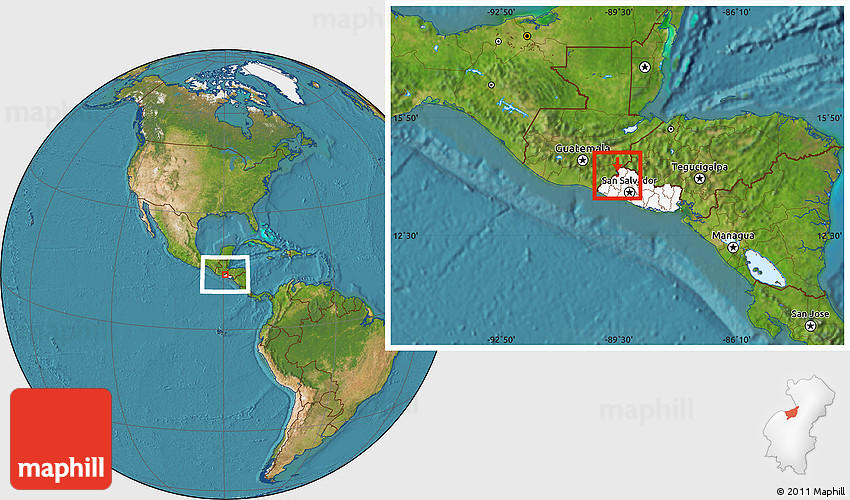 Maphill is a collection of map images. This image combines a satellite map with the globe centered on San Antonio Pajonal. Use the buttons under the image to switch to different map types.