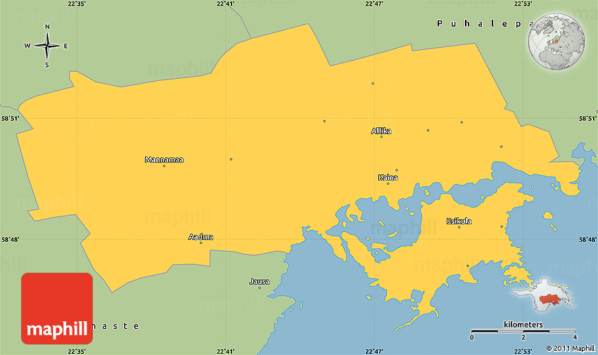 The simple savanna style outline map represents one of several map types and styles available. Look at Käina, Hiiu, Estonia from different perspectives.