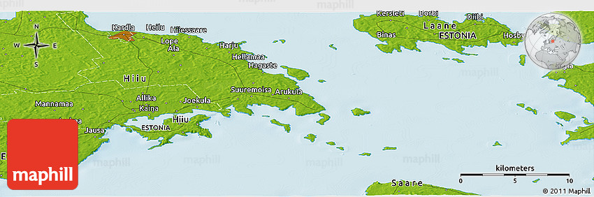 The panoramic physical map represents one of many map types and styles available. Look at Palade, Pühalepa, Hiiu, Estonia from different perspectives.