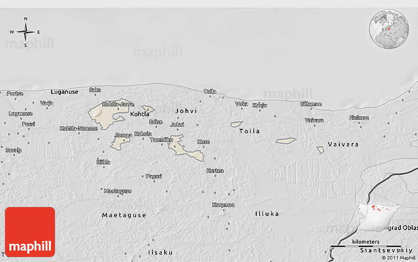 The value of Maphill lies in the possibility to look at the same area from several perspectives. Maphill presents the map of Kohtla-Järve in a wide variety of map types and styles.