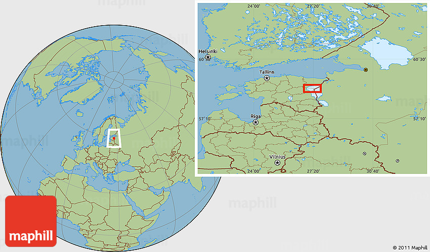 Maphill is a collection of map images. This image combines a savanna style map with the globe centered on Kalmaküla. Use the buttons under the image to switch to different map types.