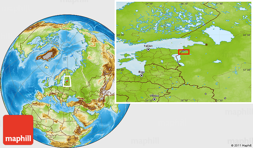 Maphill is a collection of map images. This image combines a physical map with the globe centered on Hiiemetsa. Use the buttons under the image to switch to different map types.