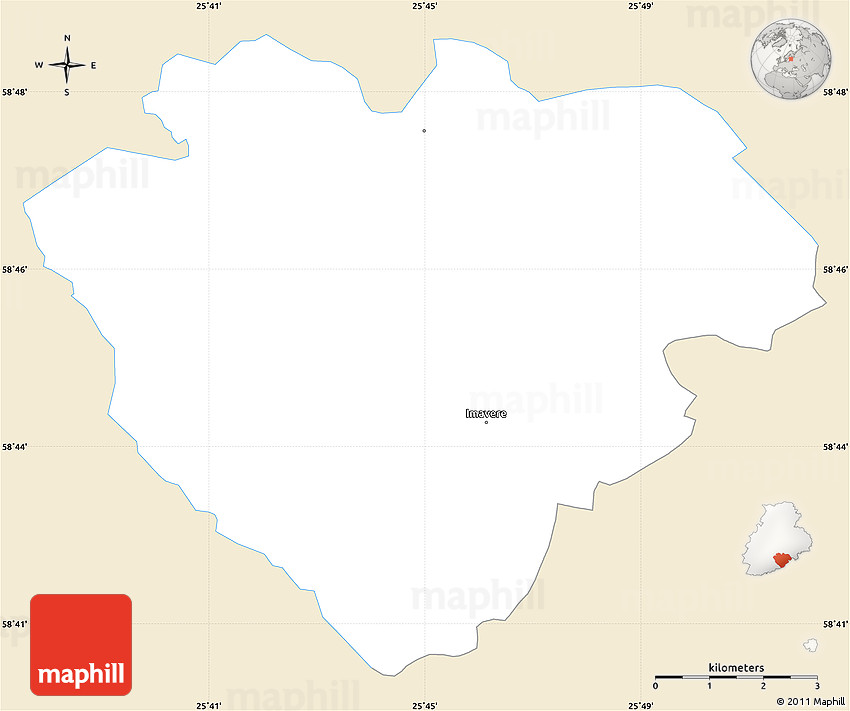 This map uses colors of vintage antique maps. Imavere is highlighted with white. The rest of the map is beige colored shaded relief map.