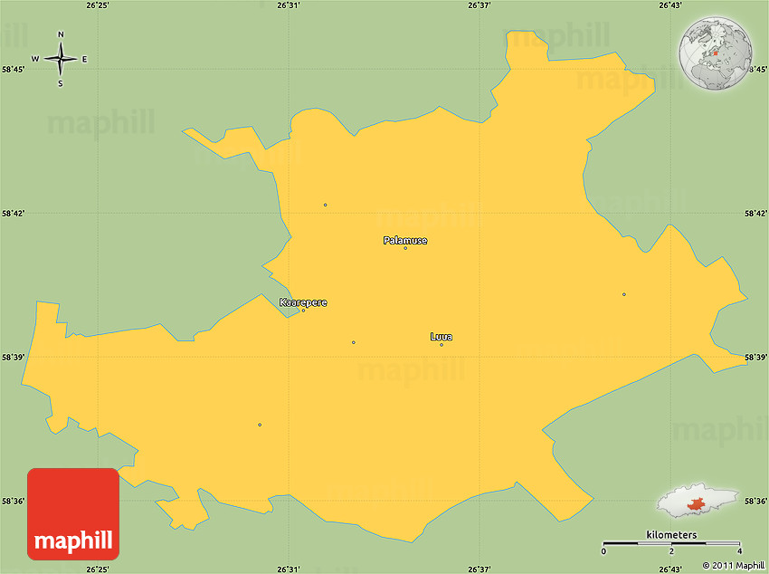 The simple savanna style outline map represents one of several map types and styles available. Look at Palamuse, Jogeva, Estonia from different perspectives.