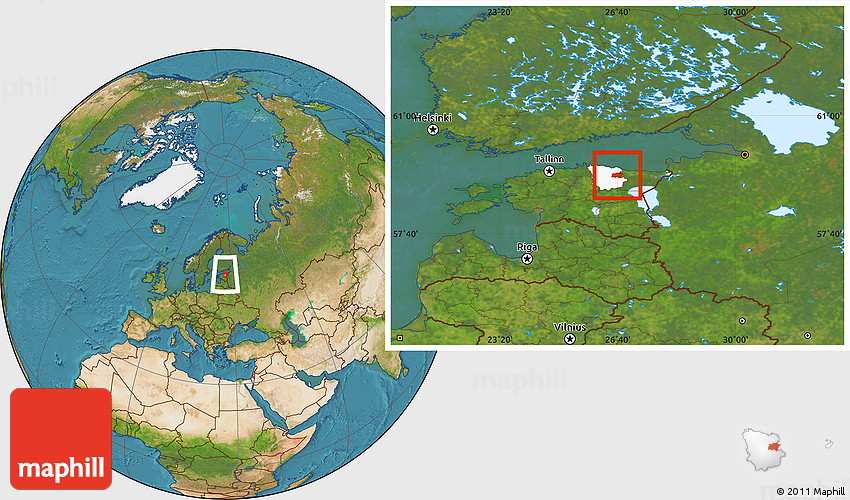 Maphill is a collection of map images. This image combines a satellite map with the globe centered on Rägavere. Use the buttons under the image to switch to different map types.