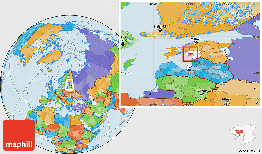 Maphill is a collection of map images. This image combines a political map with the globe centered on Audru. Use the buttons under the image to switch to different map types.