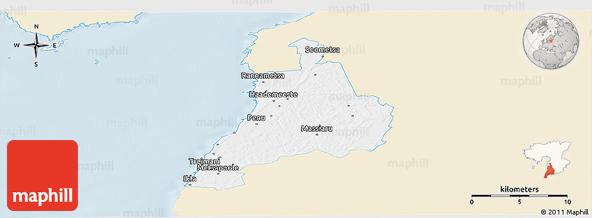 This map uses colors of vintage antique maps. Häädemeeste is highlighted with white. The rest of the map is beige colored shaded relief map.