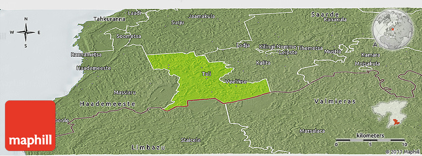 The panoramic physical map represents one of several map types and styles available. Look at Tali, Pärnu, Estonia from different perspectives.