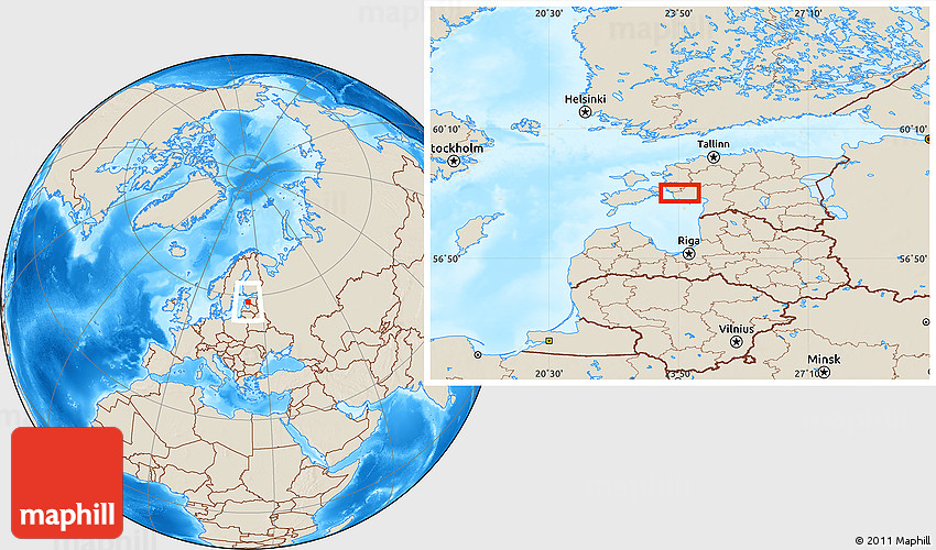 Maphill is a collection of map images. This image combines a shaded relief map with the globe centered on Läilaste. Use the buttons under the image to switch to different map types.