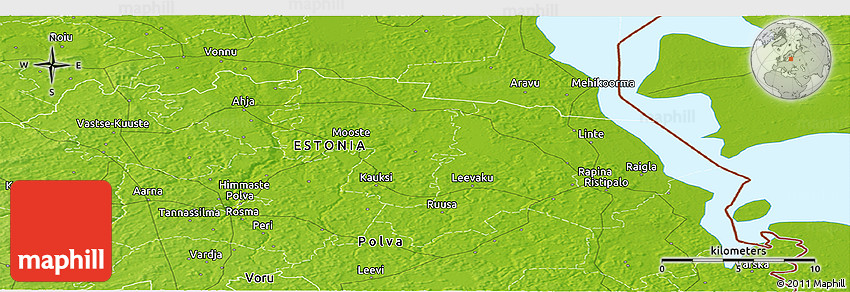 The panoramic physical map represents one of many map types and styles available. Look at Ihamaru, Kolleste, Polva, Estonia from different perspectives.