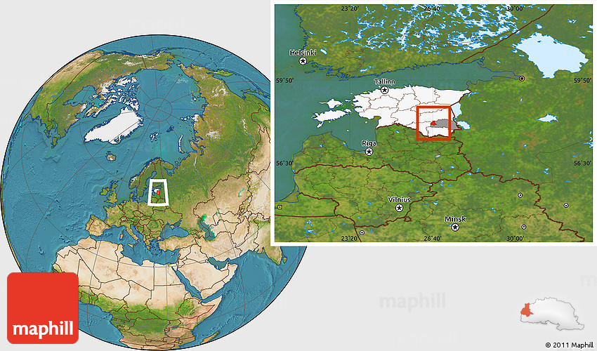 Maphill is a collection of map images. This image combines a satellite map with the globe centered on Valgjärve. Use the buttons under the image to switch to different map types.