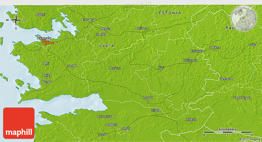 The 3D physical map represents one of many map types and styles available. Look at Vinguta, Loodna, Rapla, Estonia from different perspectives.