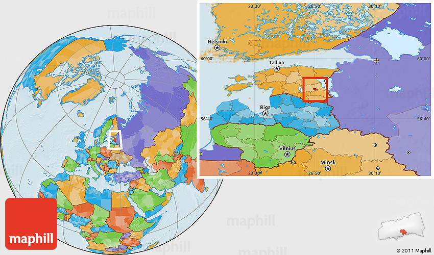 Maphill is a collection of map images. This image combines a political map with the globe centered on Haaslava. Use the buttons under the image to switch to different map types.