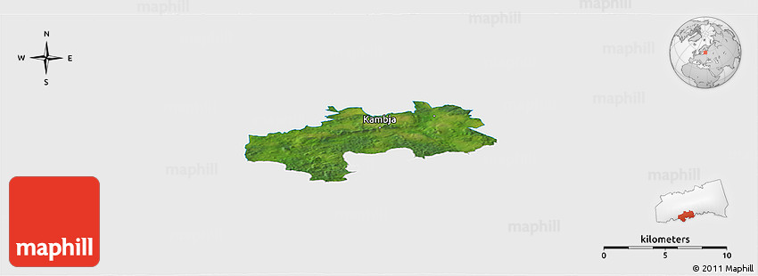 Each map type offers different information and each map style is designed for a different purpose. Read about the styles and map projection used in the above map (Satellite Panoramic Map of Kambja, single color outside).