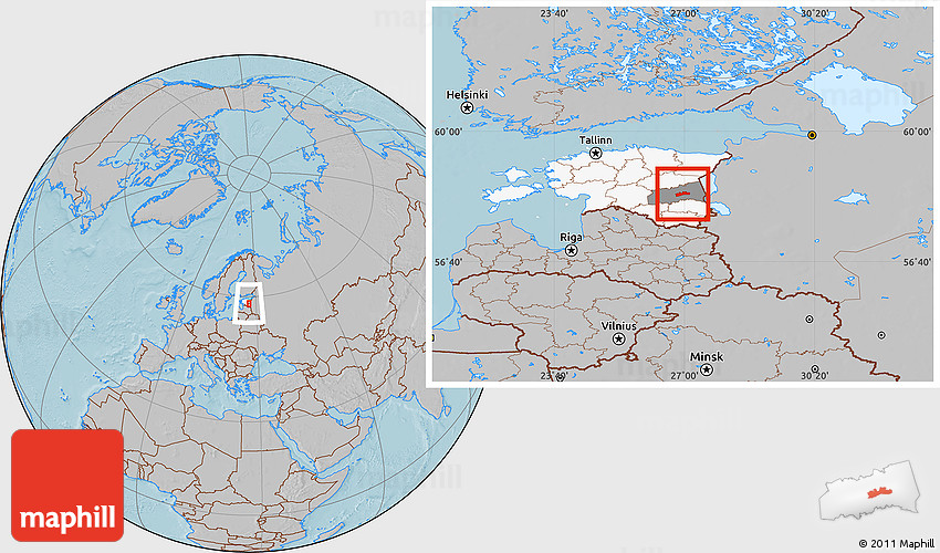 Maphill is a collection of map images. This image combines a gray map with the globe centered on Luunja. Use the buttons under the image to switch to different map types.