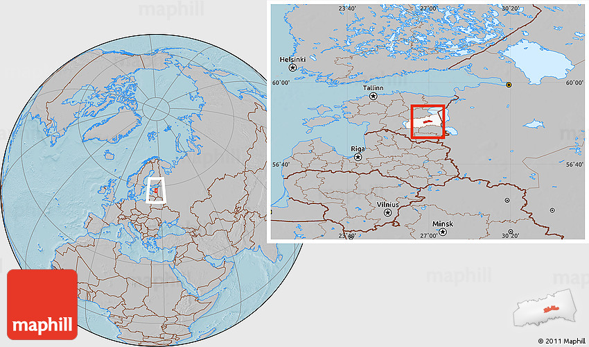 Maphill is a collection of map images. This image combines a gray map with the globe centered on Luunja. Use the buttons under the image to switch to different map types.