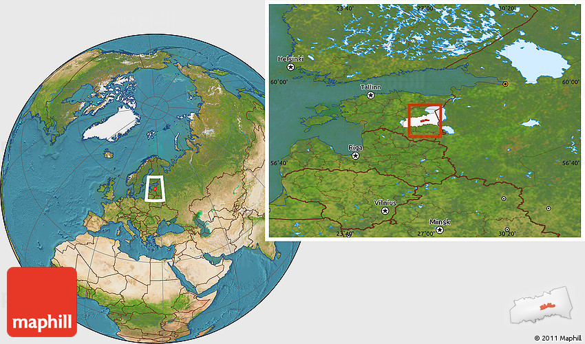 Maphill is a collection of map images. This image combines a satellite map with the globe centered on Luunja. Use the buttons under the image to switch to different map types.