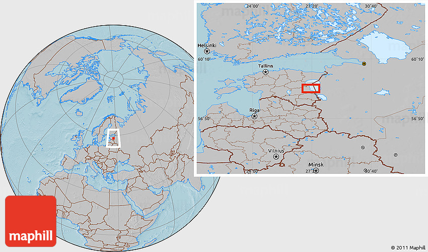 Maphill is a collection of map images. This image combines a gray map with the globe centered on Pilka. Use the buttons under the image to switch to different map types.