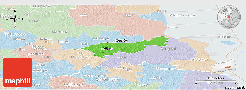 The panoramic political map represents one of several map types and styles available. Look at Mäksa, Tartu, Estonia from different perspectives.