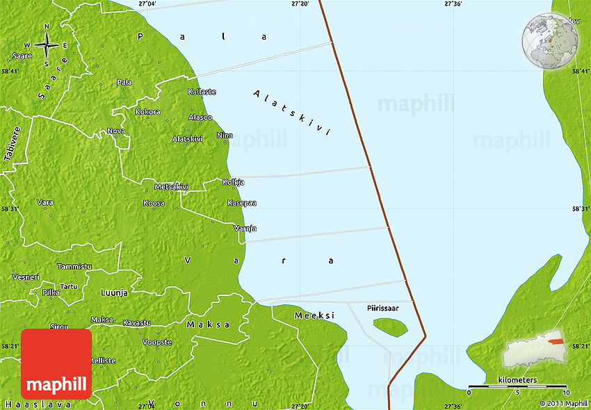 Physical map illustrates the mountains, lowlands, oceans, lakes and rivers and other physical landscape features of Peipsiääre. Differences in land elevations relative to the sea level are represented by color.