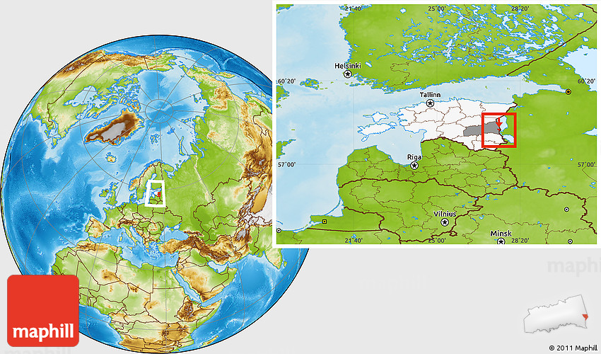 Maphill is a collection of map images. This image combines a physical map with the globe centered on Piirissaar. Use the buttons under the image to switch to different map types.