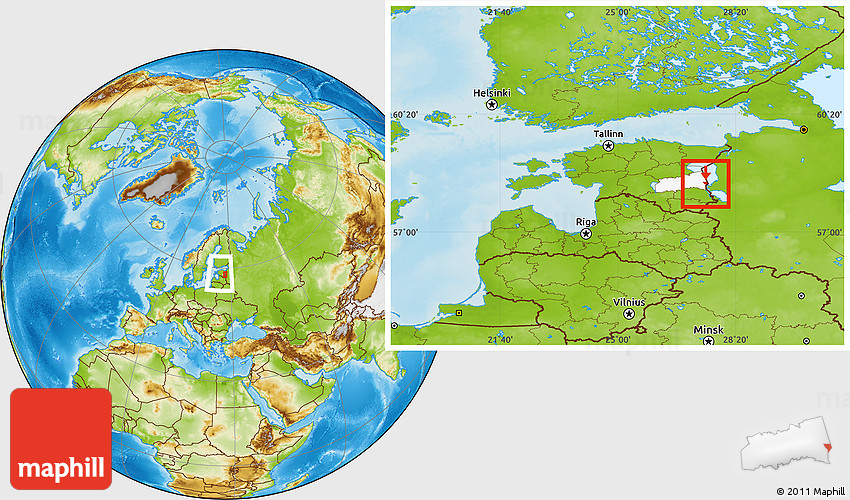 Maphill is a collection of map images. This image combines a physical map with the globe centered on Piirissaar. Use the buttons under the image to switch to different map types.