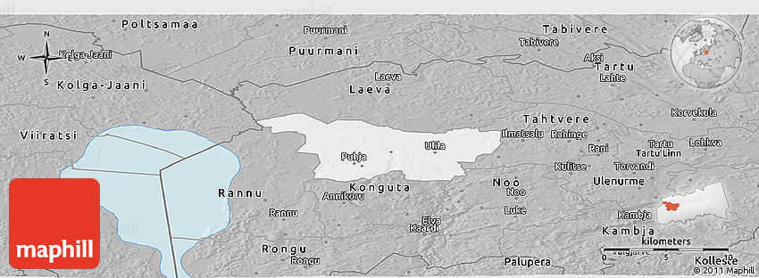 The panoramic gray map represents one of several map types and styles available. Look at Puhja, Tartu, Estonia from different perspectives.