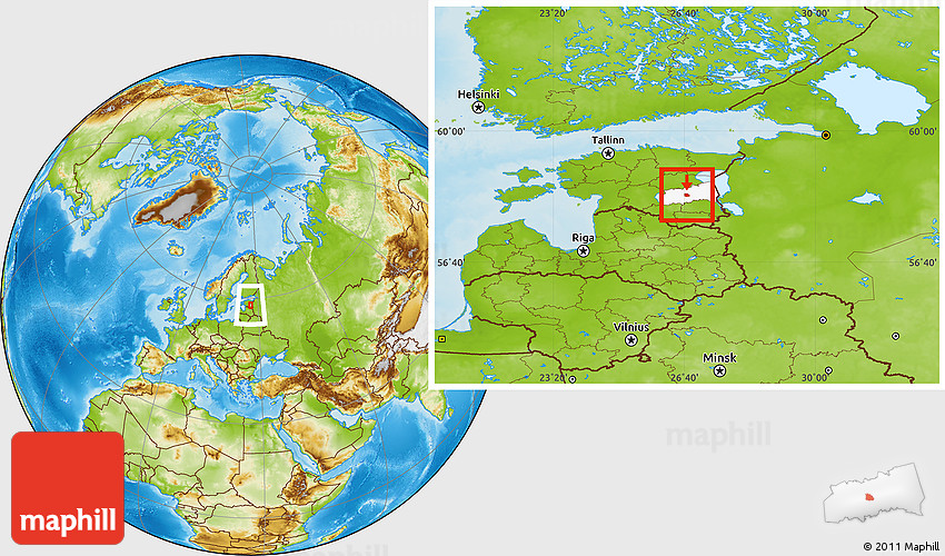 Maphill is a collection of map images. This image combines a physical map with the globe centered on Tartu Linn. Use the buttons under the image to switch to different map types.
