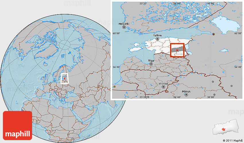 Maphill is a collection of map images. This image combines a gray map with the globe centered on Ülenurme. Use the buttons under the image to switch to different map types.